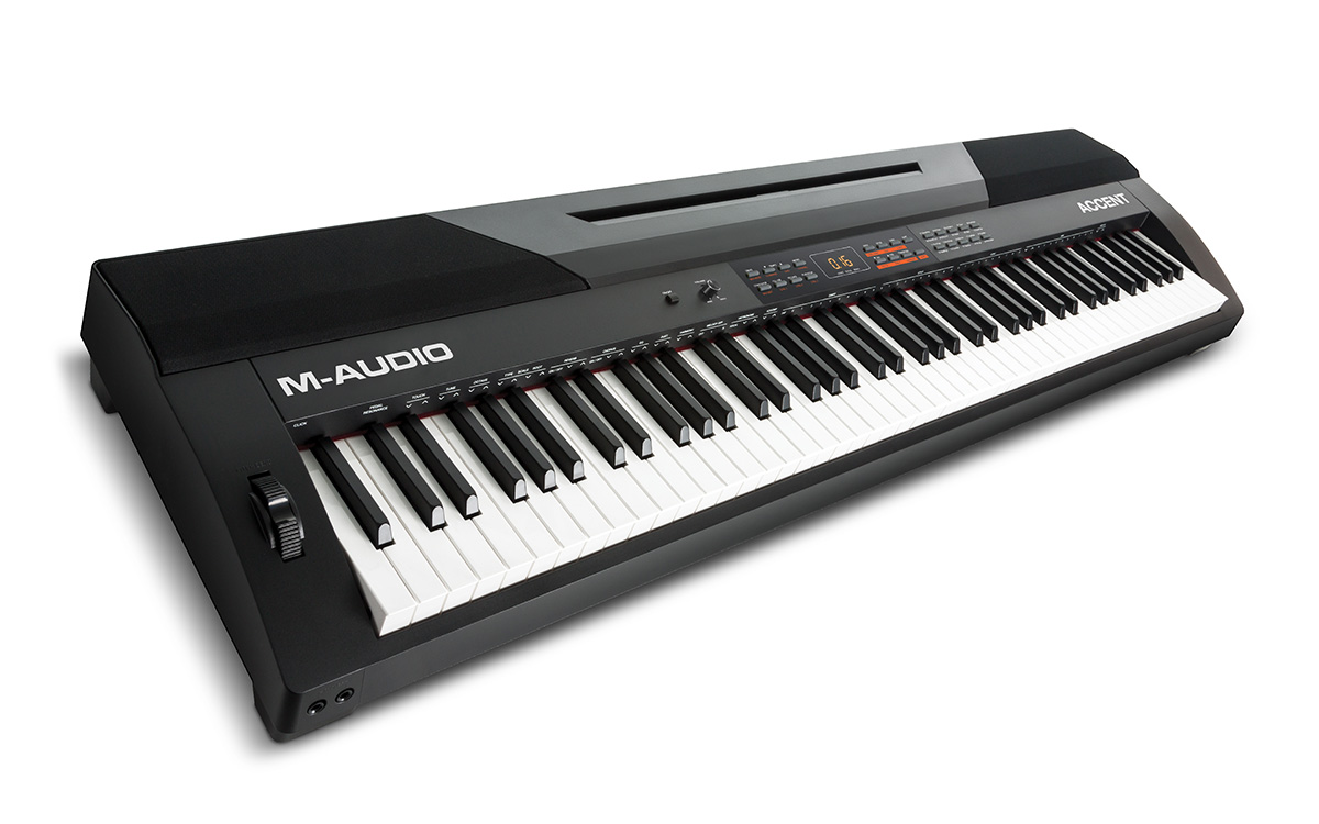 For students, serious enthusiasts and professionals looking for a full-sized, versatile digital piano that is a great value and also easy to transport and set up, you couldn’t do better than M-Audio Accent. Add to its great basic performance and terrific sound its ability to interface with your virtual instrument software and plugins, and you’ll find that the Accent offers everything you could possibly want.