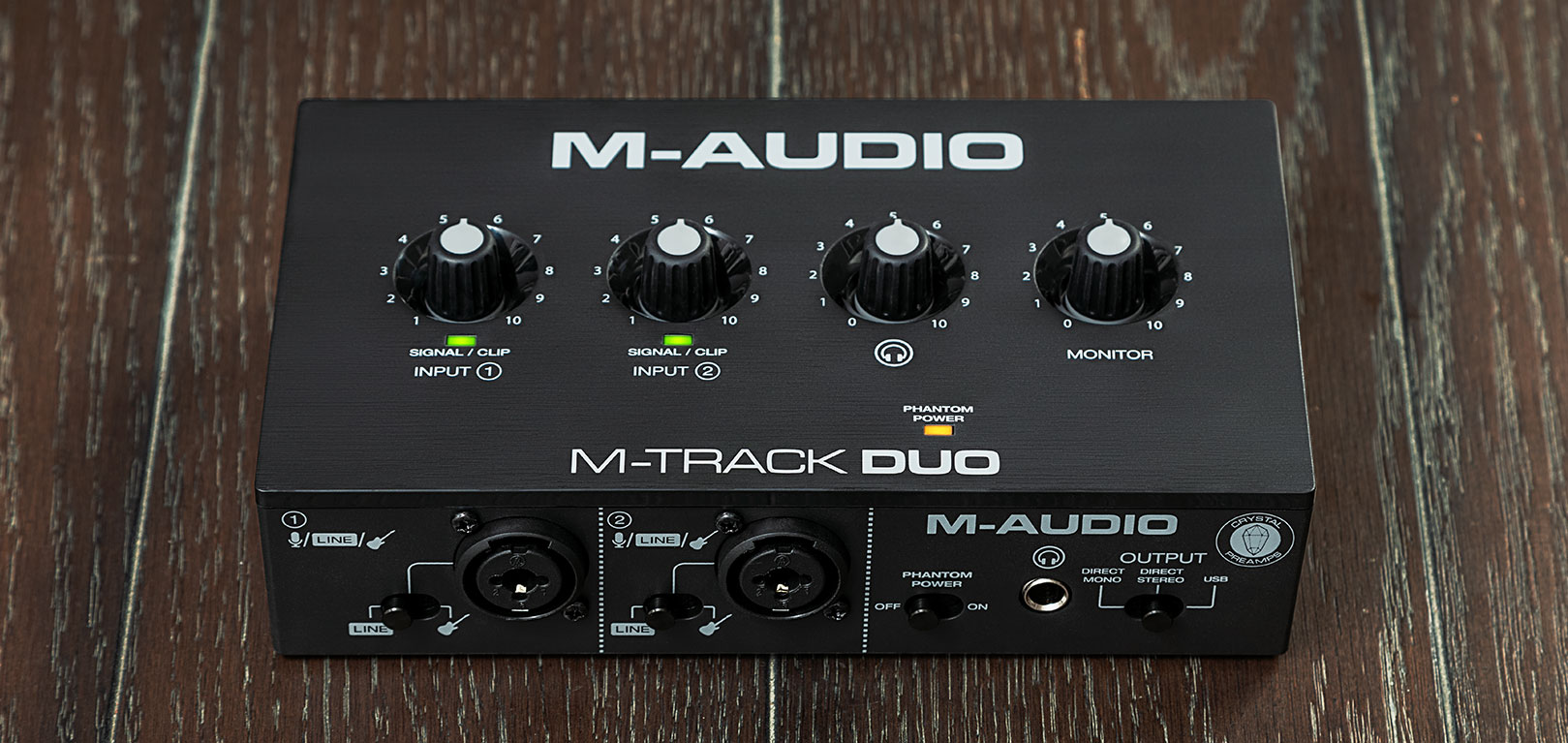 Our engineers designed the Crystal Preamps to provide you with a transparent, low-noise preamp that guarantees the best sound from your microphones and captures your performance exactly the way you intended. The M-Track Duo incorporates pristine A/D converters for digital audio with explosive dynamic range that captures every nuance and subtlety of the performance.