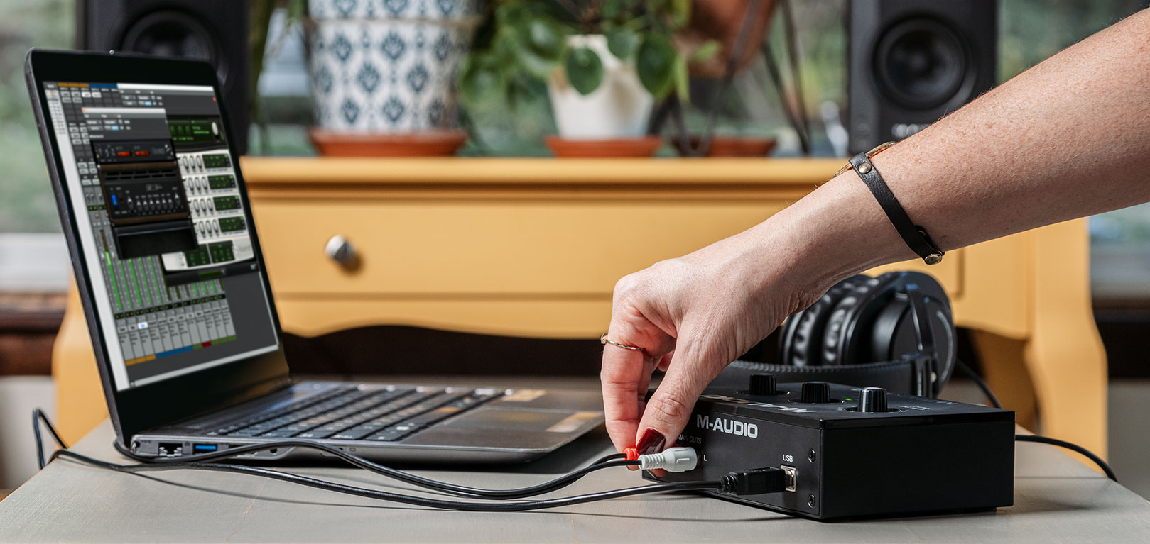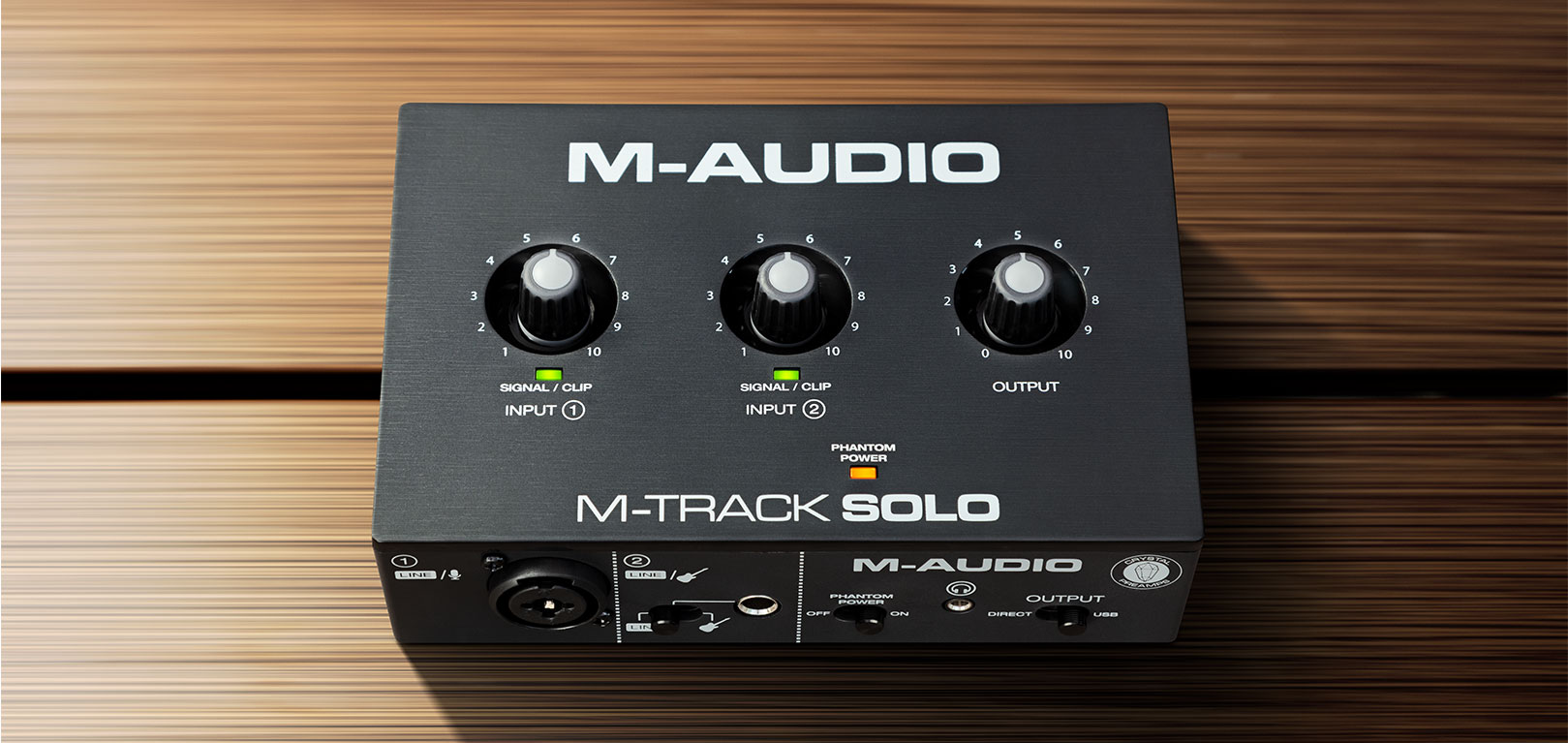 Our engineers designed Crystal Preamps to provide you with a transparent, low-noise preamp that guarantees the best sound from your microphones and captures your performance exactly the way you intended. The M-Track Solo incorporates pristine A/D converters for digital audio with explosive dynamic range that captures every nuance and subtlety of the performance.