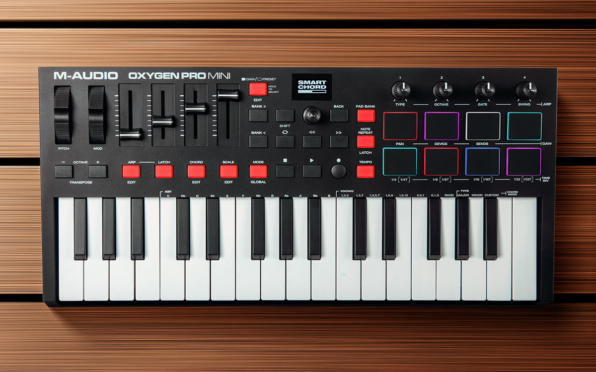 Built into the Oxygen Pro Mini are features that are essential to creating modern day pop, electronic, hip hop, and dance music. Note Repeat and the built-in Arpeggiator open up a world of precise music production and live sound techniques to make your music sound professional.
