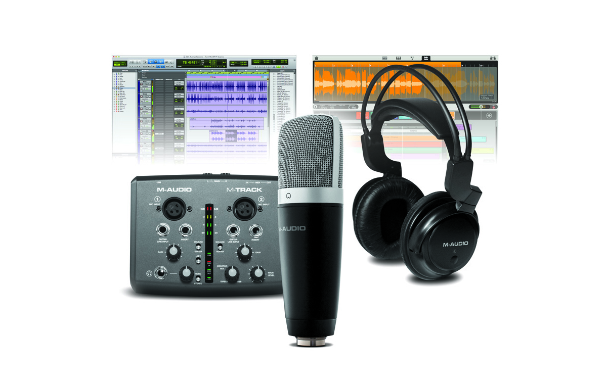 The Vocal Studio Pro provides everything you need for great vocal productions. This complete hardware package includes the M-Audio microphone, M-Track interface, and headphones; plus a mic clip, tabletop stand, an XLR mic cable, and a USB cable. The Vocal Studio Pro software pack includes both Pro Tools Express and Ignite by AIR Music Technology.