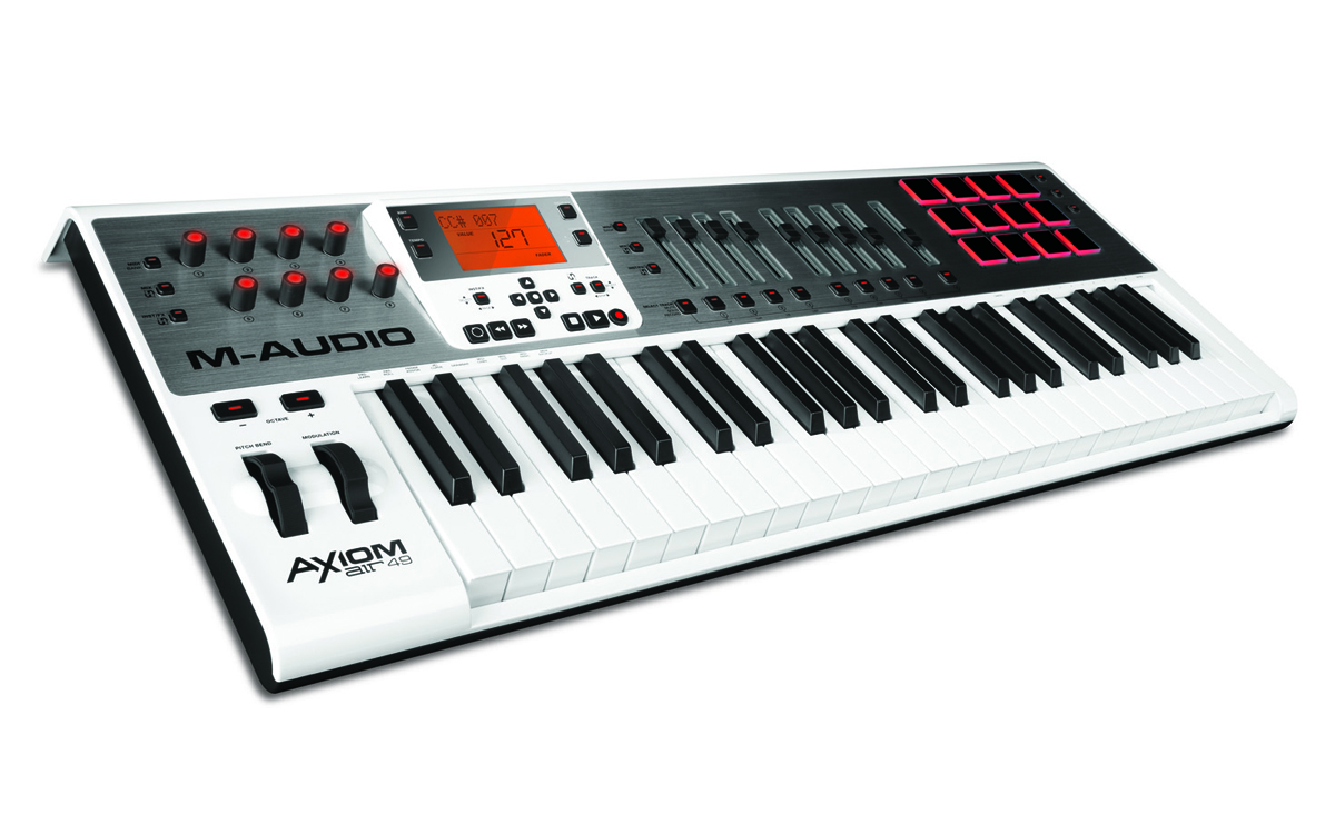 Take command of your studio while achieving higher levels of musical expression with Axiom AIR 49 from M-Audio. Offering unprecedented control, Axiom AIR 49 brings together unmatched ease-of-use plus empowering software to form the ultimate studio centerpiece. Get inspired by 49 synth-action keys—with aftertouch. The illuminated pads are velocity sensitive and even respond to pressure. Experience total hands-on control of your sessions using assignable LED lit buttons and rotary encoder knobs, long-throw faders, plus an array of dedicated transport and software navigation buttons. HyperControl® interactive controller mapping unites your hardware and software so you can start working faster. Completing this powerful package is the complementary software selection: Ignite by AIR music creation software. Ignite delivers a comprehensive path for transforming the ideas in your head into a finished piece of music.