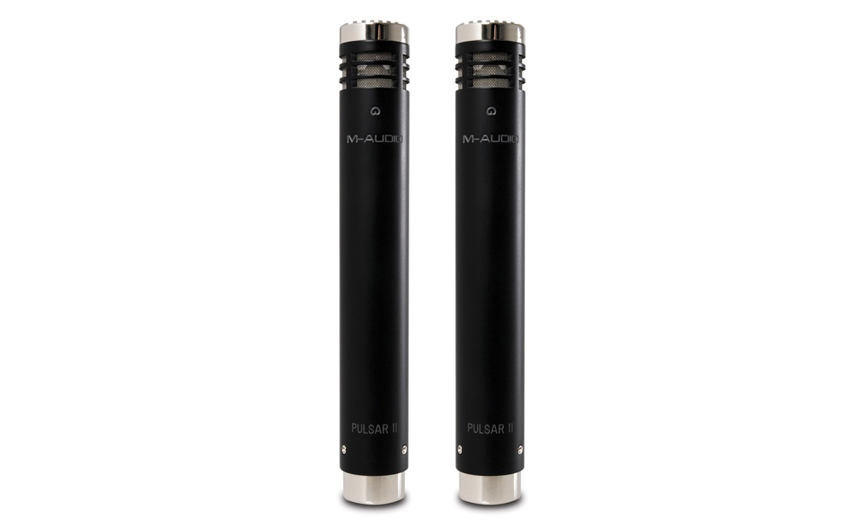 Carefully selected for their nearly identical response, matched pairs of Pulsar II microphones from M-Audio® deliver superior stereo performance. The brass bodies are equipped with internal shockmounts and low-noise transformerless electronics. Each microphone offers a switchable 10 dB attenuation pad, plus an 80 Hz low-cut filter. Together, these functions allow the Pulsar II microphones to adapt to a variety of applications. The included hardware package allows Pulsar II microphones to be mounted in either an X-Y or ORTF (110º) stereo configuration. While ideal for stereo use, these microphones can also be used independently in a wide range of critical recording situations. This complete package includes a stereo mounting bar, hard mounts, risers, windscreens, and cloth bags, as well as a handsome and functional wooden storage/travel case.